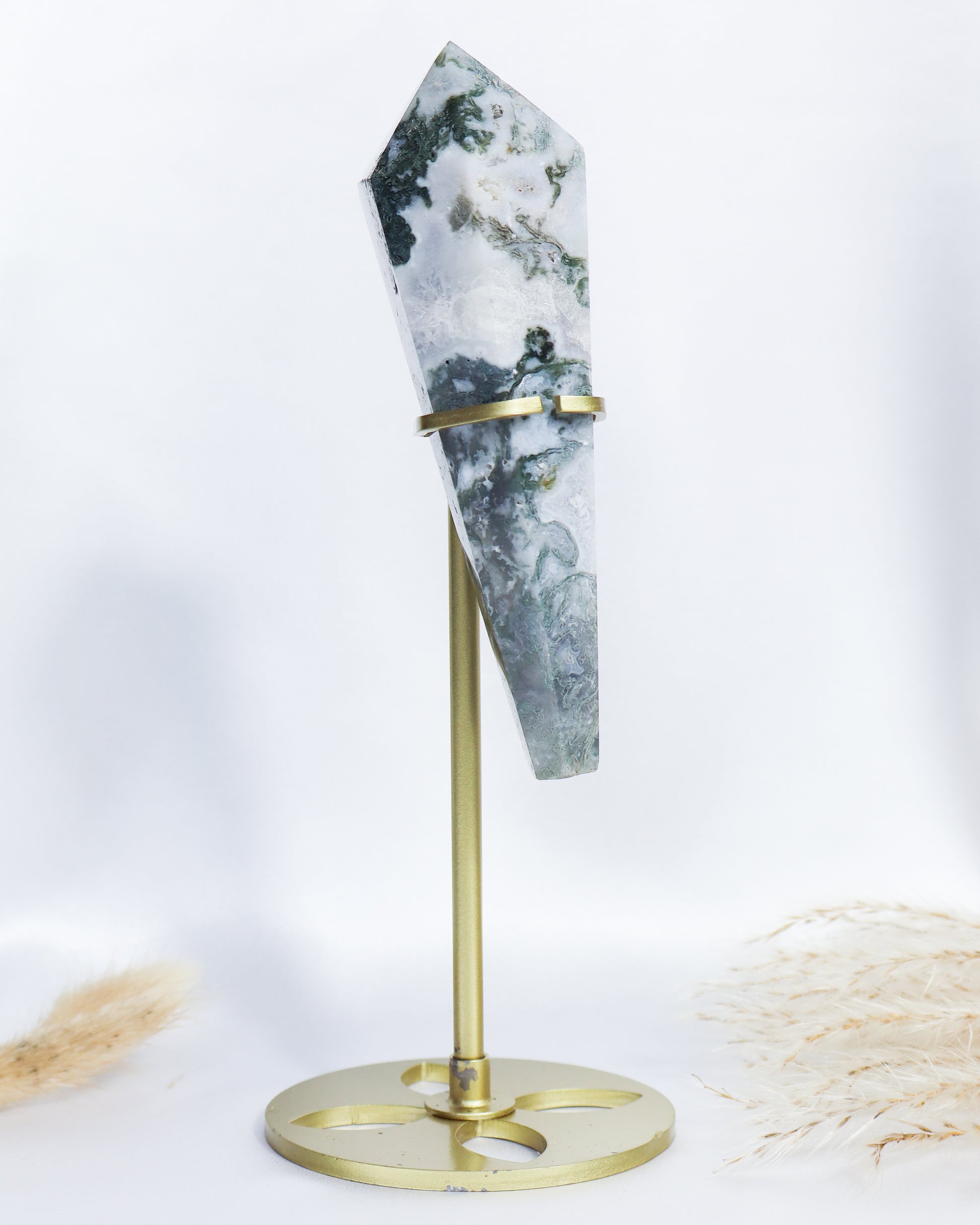 Moss Agate Wand with Stand #8