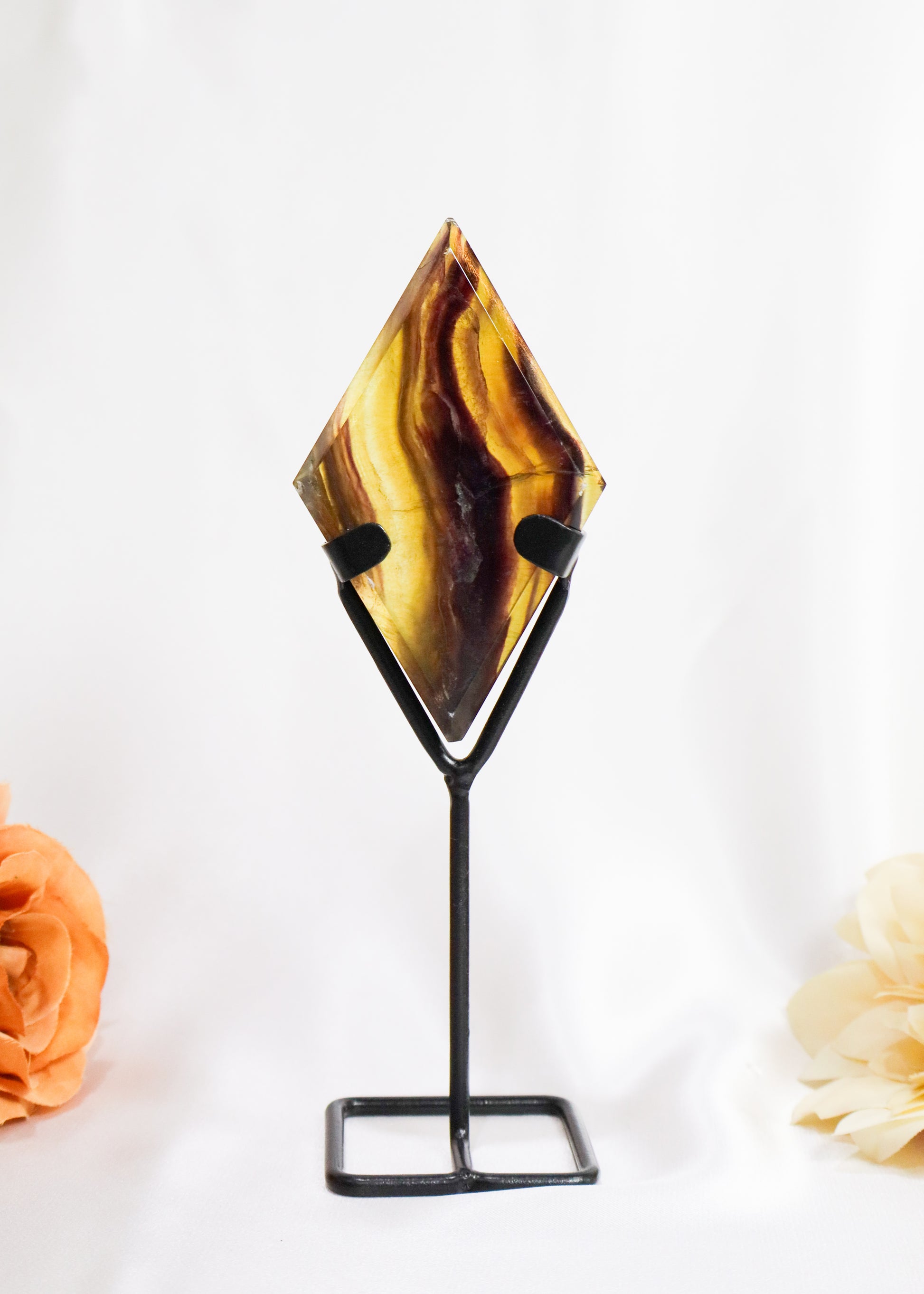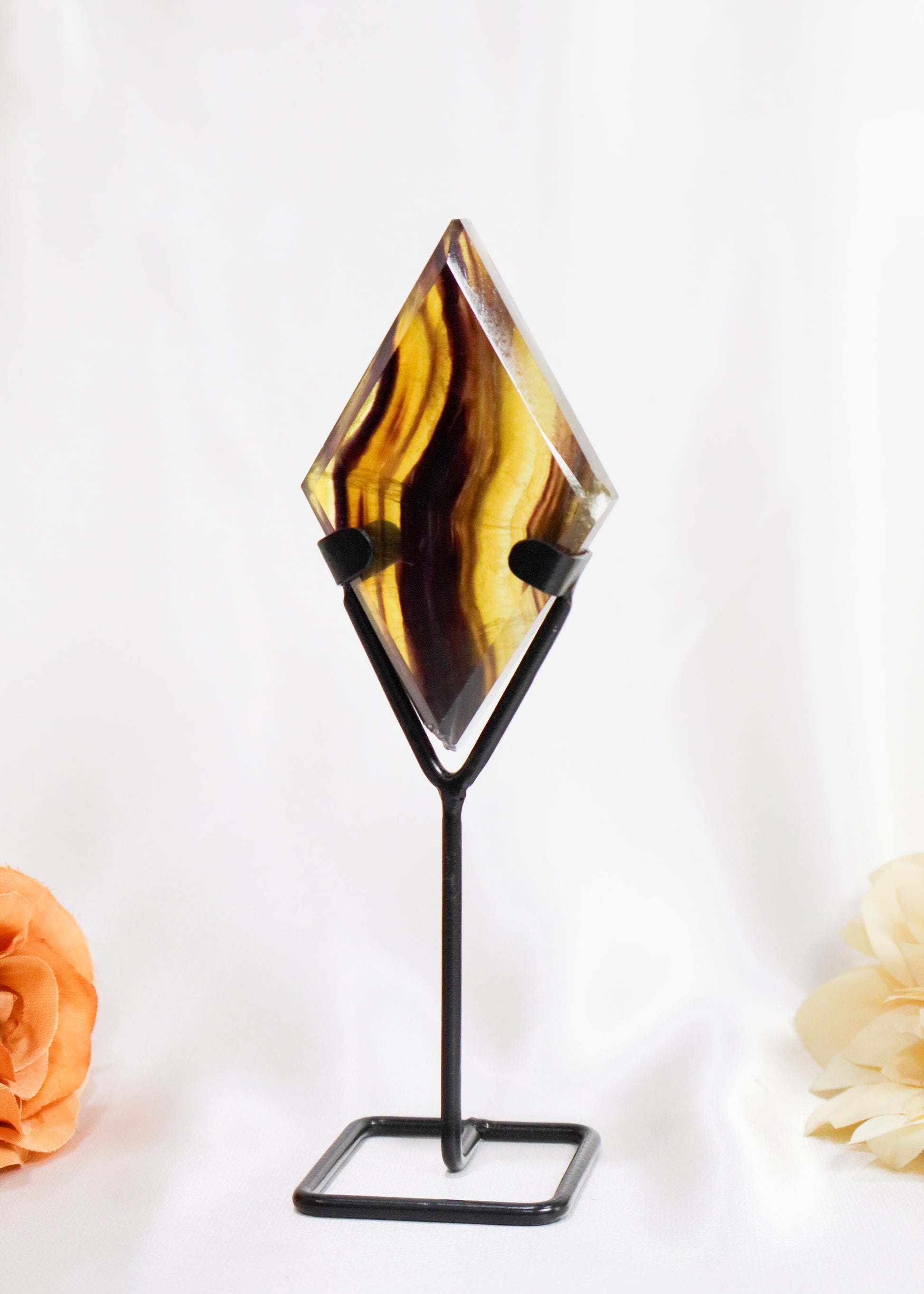 Rainbow Fluorite Diamond on Stand #2 - Little Chipped from bottom